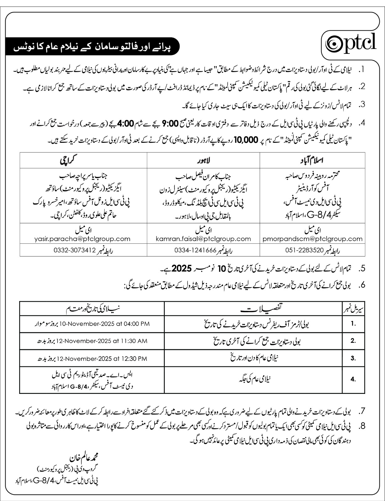 Auction Notice - Auction for Disposal of Technology, Admin and Warehouse Junk Materials on “As is Where is” Basis